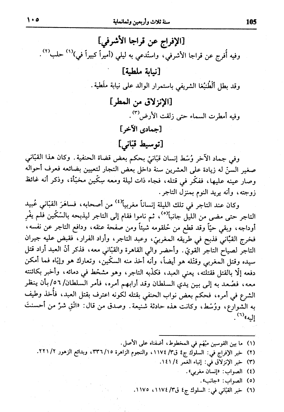 (¬6) خبر القبّاني في: السلوك ج 4 ق 3/ 1174، 1175.