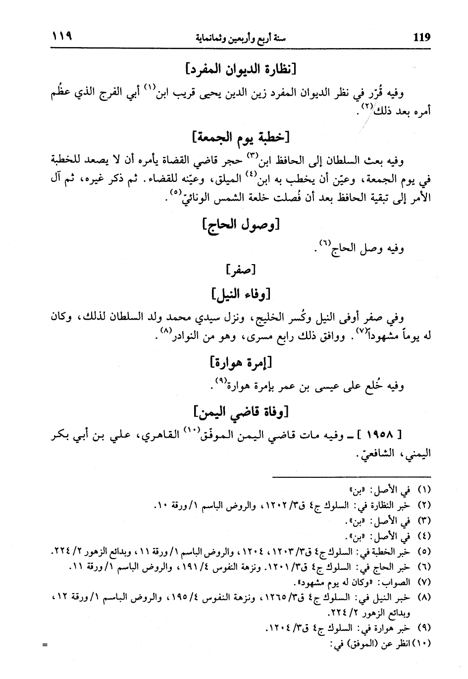 (¬6) خبر الحاج في: السلوك ج 4 ق 3/ 1201، ونزهة النفوس 4/ 191، والروض الباسم 1 / ورقة 11.