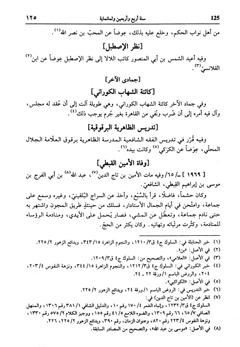 (¬7) انظر عن (الأمين بن تاج الدين) في: السلوك ج 4 ق 3/ 1232، وإنباء الغمر 4/ 170 رقم 10، والدليل الشافي 1/ 381 رقم 1306، والمنهل الصافي 7/ 65، 66 رقم 1309، والضوء اللامع 5/ 41 رقم 155، ووجيز الكلام 2/ 575 رقم 1330، ونزهة النفوس 4/ 223 رقم 820، وعنوان الزمان، رقم 390، وبدائع الزهور 2/ 225، 226.