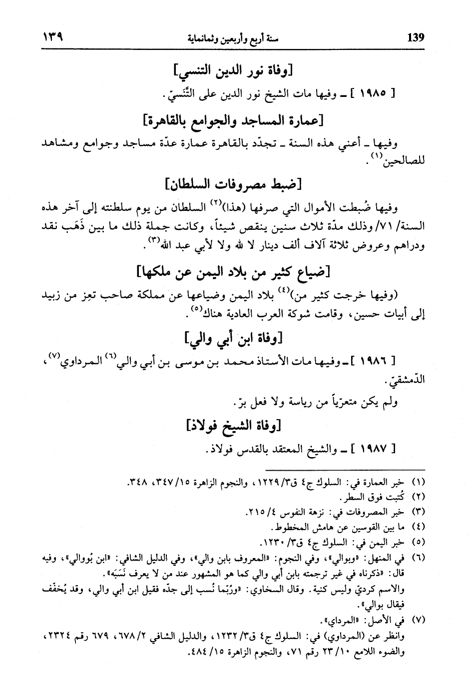 [1985]- وفيها مات الشيخ نور الدين على التّنسيّ.