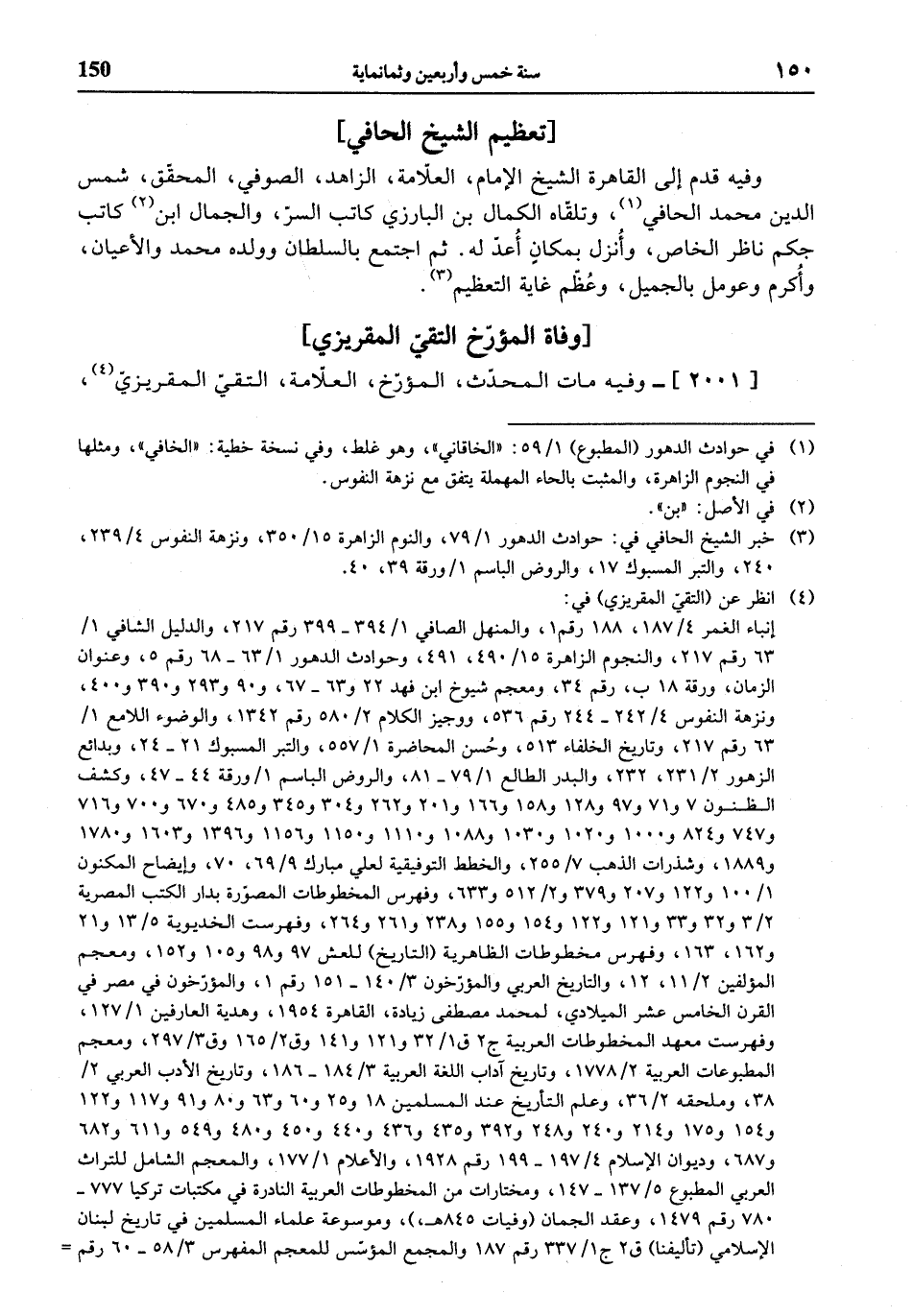 [2001]- وفيه مات المحدّث، المؤرّخ، العلاّمة، التقيّ المقريزيّ (¬4)،