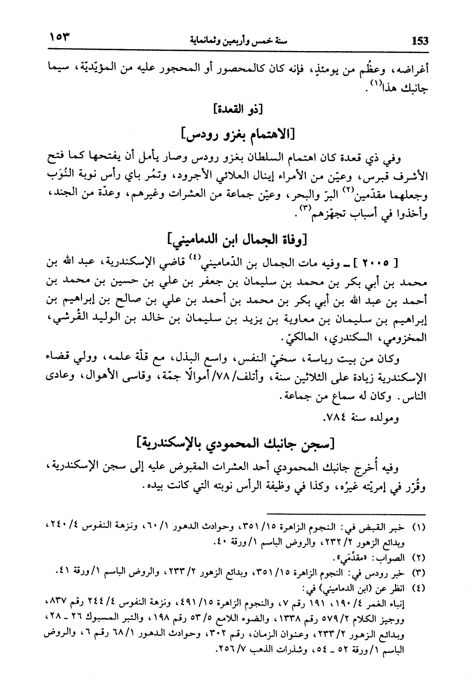(¬3) خبر رودس في: النجوم الزاهرة 15/ 351، وبدائع الزهور 2/ 233، والروض الباسم 1 / ورقة 41.