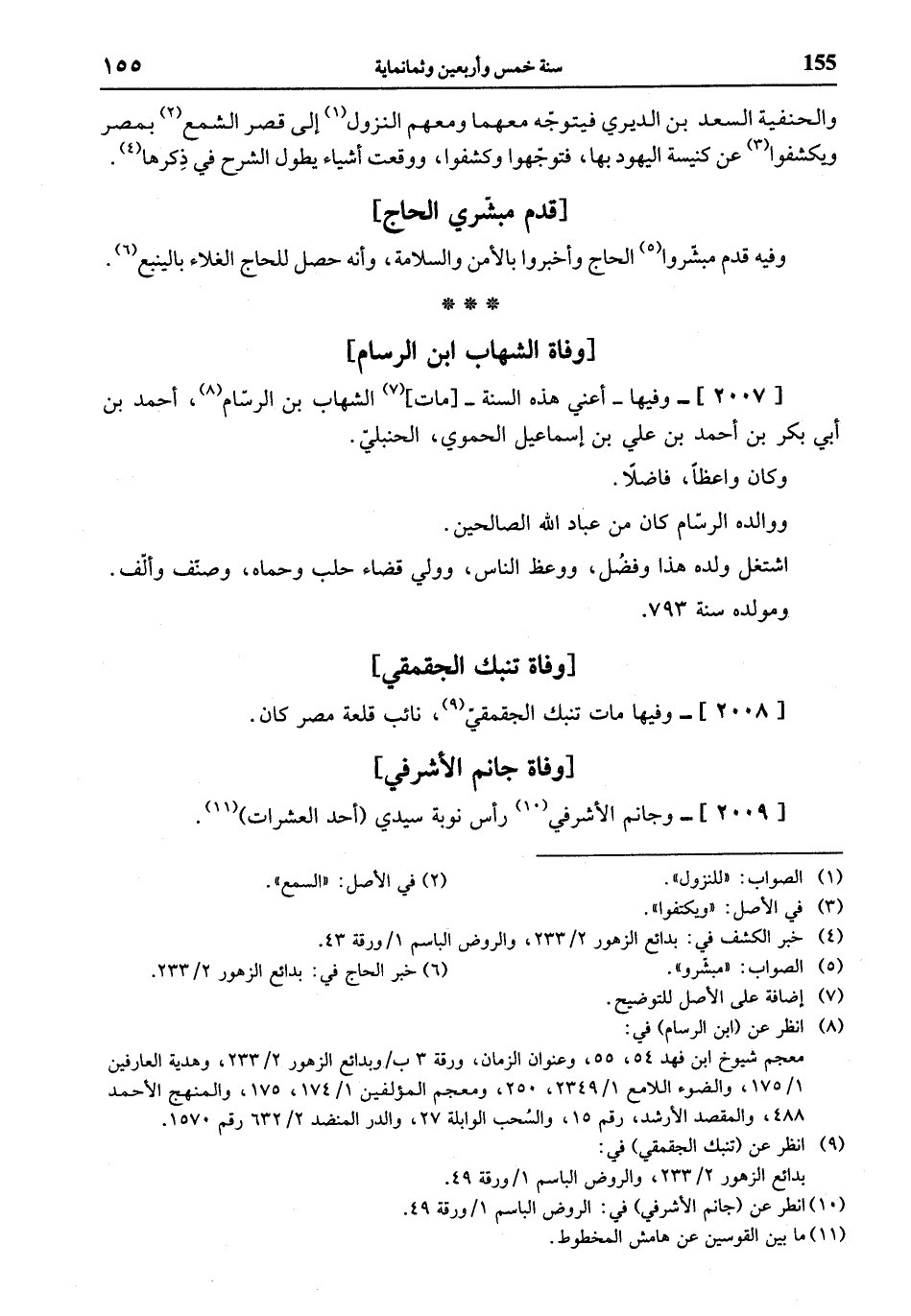 (¬8) انظر عن (ابن الرسام) في: معجم شيوخ ابن فهد 54، 55، وعنوان الزمان، ورقة 3 ب / وبدائع الزهور 2/ 233، وهدية العارفين 1/ 175، والضوء اللامع 1/ 2349، 250، ومعجم المؤلفين 1/ 174، 175، والمنهج الأحمد 488، والمقصد الأرشد، رقم 15، والسحب الوابلة 27، والدر المنضد 2/ 632 رقم 1570.