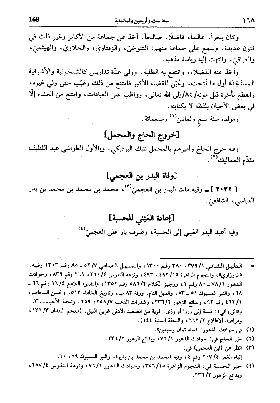 (¬2) خبر الحاج في: حوادث الدهور 1/ 76، وبدائع الزهور 2/ 236.