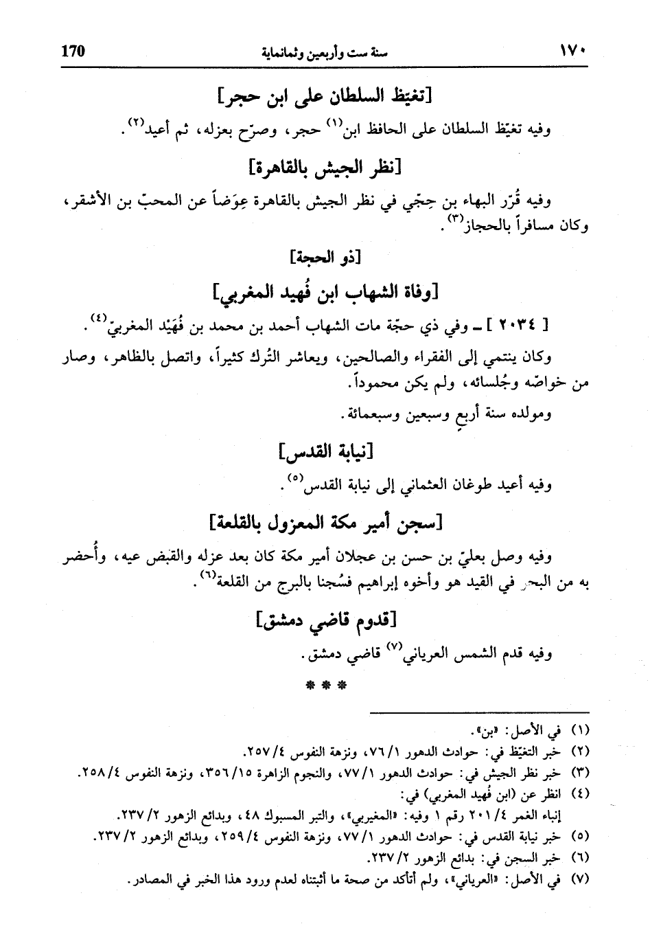 (¬4) انظر عن (ابن فهيد المغربي) في: إنباء الغمر 4/ 201 رقم 1 وفيه: «المغيربي»، والتبر المسبوك 48، وبدائع الزهور 2/ 237.