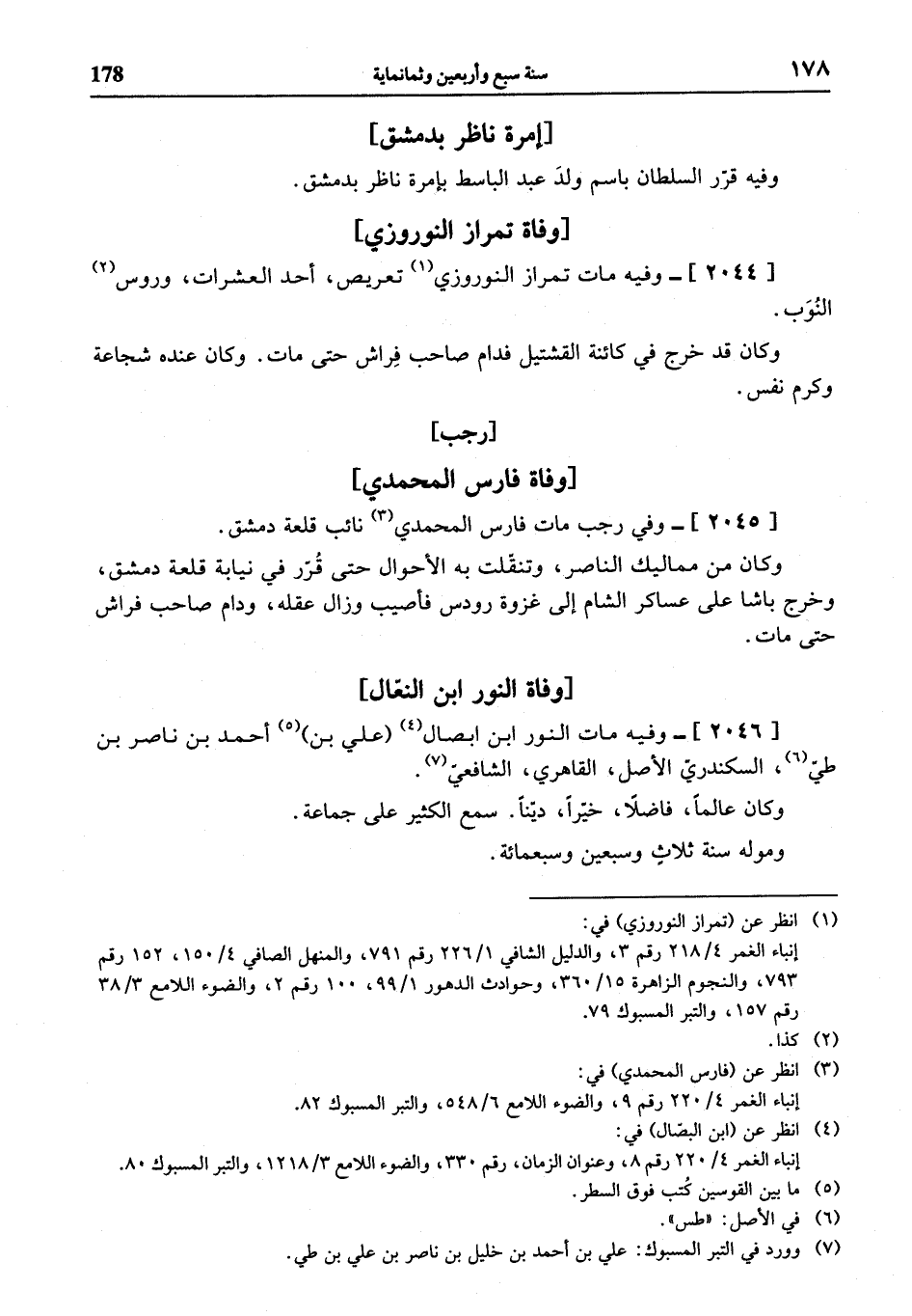 [2045]- وفي رجب مات فارس المحمدي (¬3) نائب قلعة دمشق.