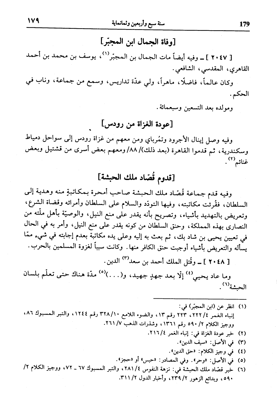 [2047]- وفيه أيضا مات الجمال بن المجبّر (¬1)، يوسف بن محمد بن أحمد القاهري، المقدسي، الشافعي.