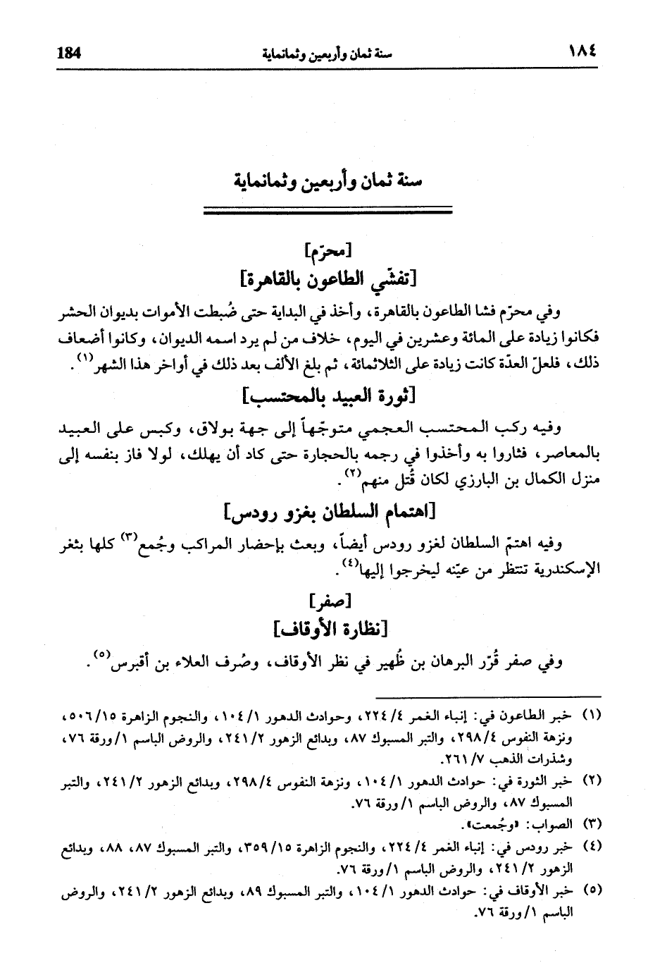 وفيه اهتمّ السلطان لغزو رودس أيضا، وبعث بإحضار المراكب وجمع (¬3) كلها بثغر الإسكندرية تنتظر من عيّنه ليخرجوا إليها (¬4).
