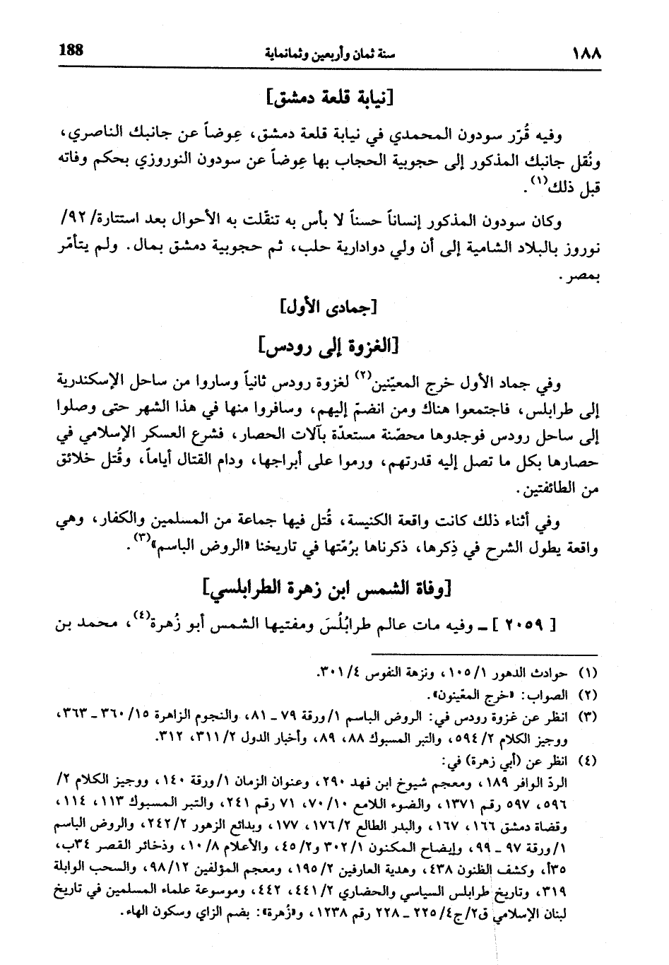 (¬3) انظر عن غزوة رودس في: الروض الباسم 1 / ورقة 79 - 81، والنجوم الزاهرة 15/ 360 - 363، ووجيز الكلام 2/ 594، والتبر المسبوك 88، 89، وأخبار الدول 2/ 311، 312.