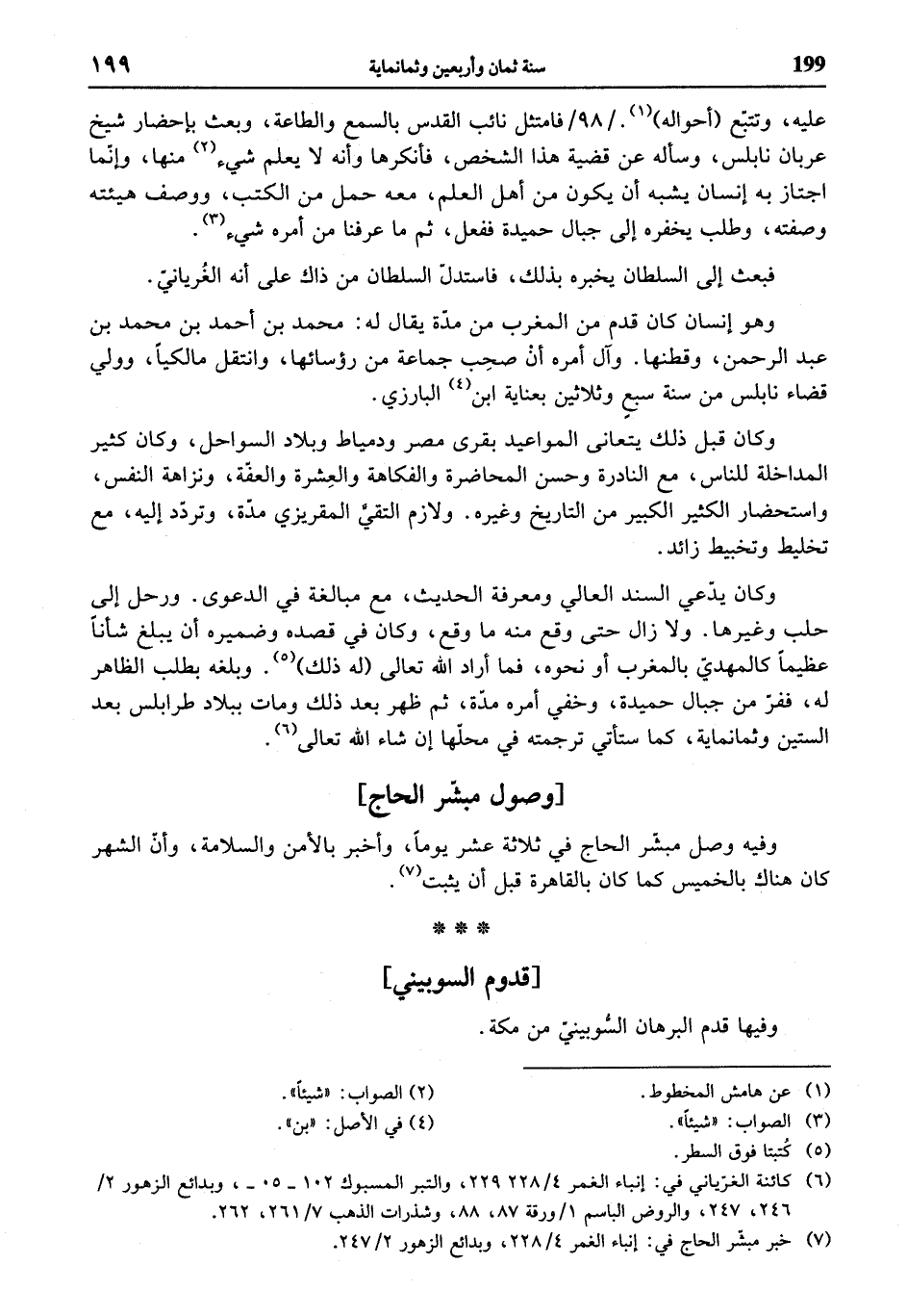 وفيها قدم البرهان السّوبينيّ من مكة.
