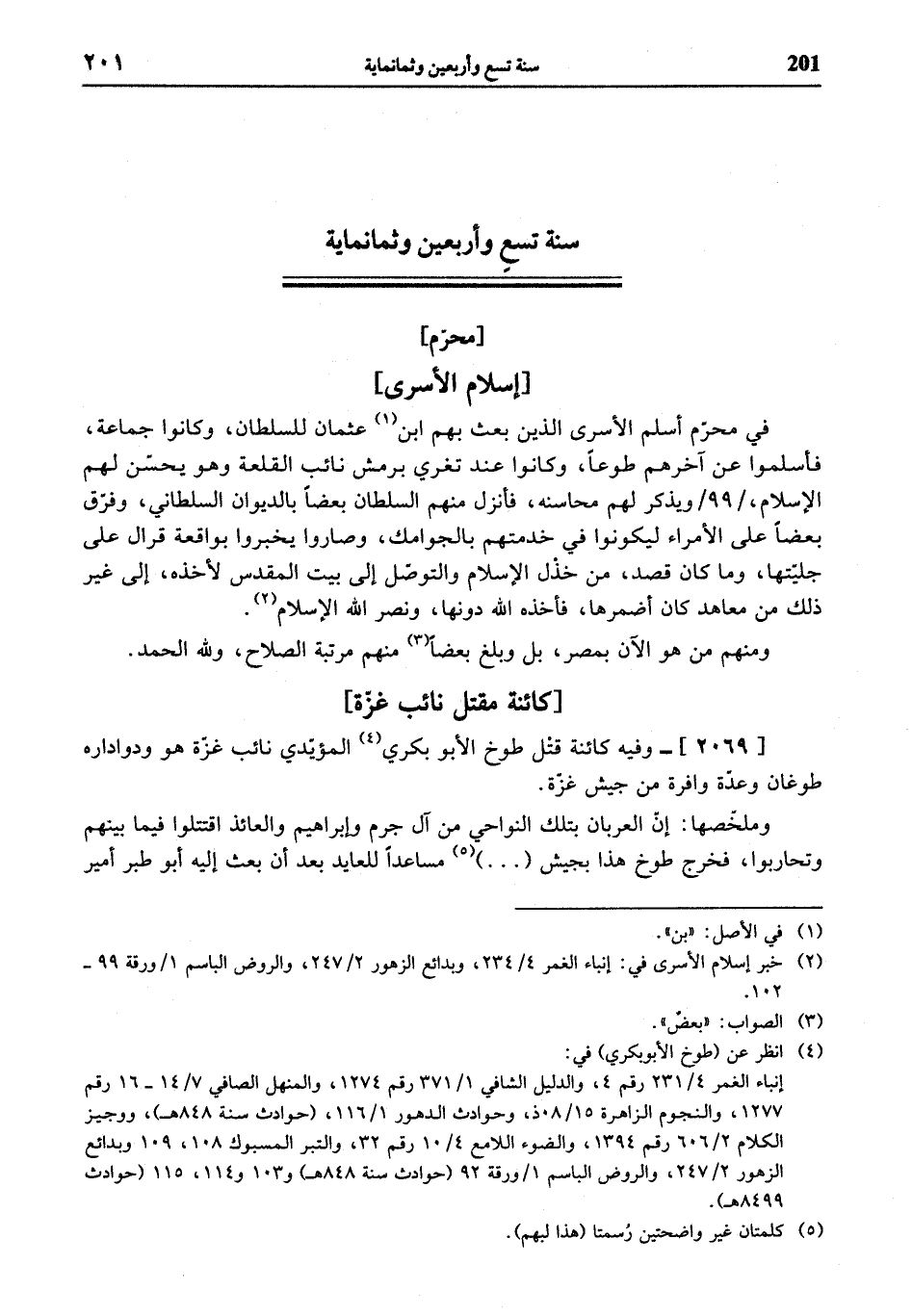 (¬2) خبر إسلام الأسرى في: إنباء الغمر 4/ 234، وبدائع الزهور 2/ 247، والروض الباسم 1 / ورقة 99 - 102.
