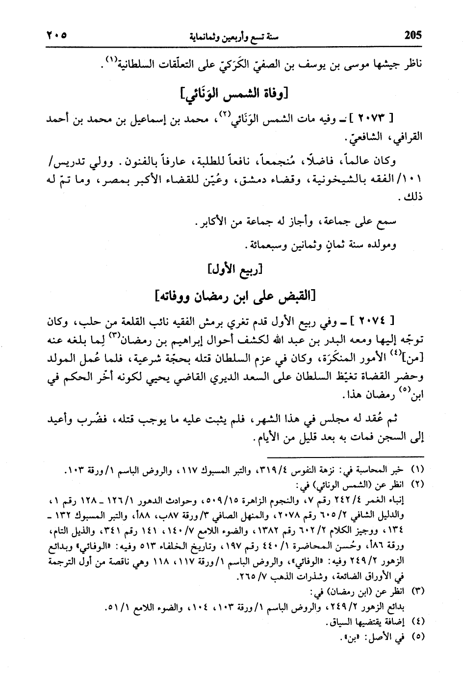 (¬3) انظر عن (ابن رمضان) في: بدائع الزهور 2/ 249، والروض الباسم 1 / ورقة 103، 104، والضوء اللامع 1/ 51.