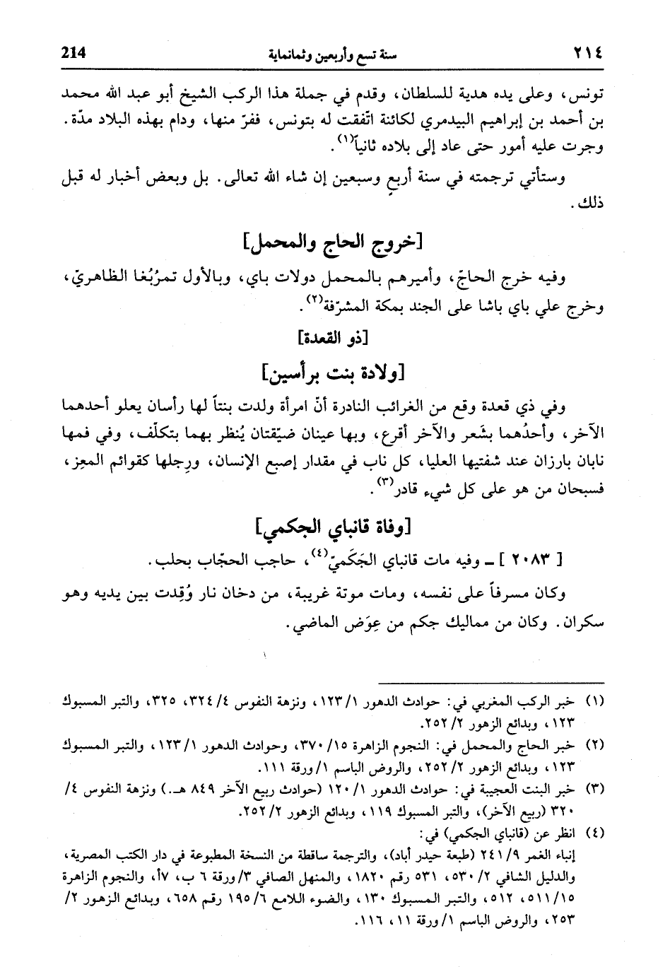 (¬2) خبر الحاج والمحمل في: النجوم الزاهرة 15/ 370، وحوادث الدهور 1/ 123، والتبر المسبوك 123، وبدائع الزهور 2/ 252، والروض الباسم 1 / ورقة 111.