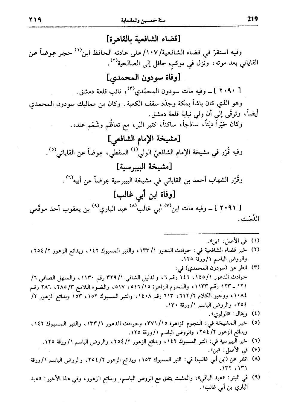 (¬6) خبر البيبرسية في: التبر المسبوك 142، وبدائع الزهور 2/ 254، والروض الباسم 1 / ورقة 125.