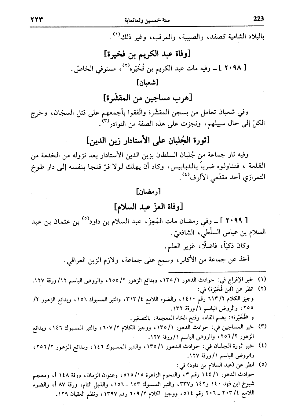 (¬3) خبر المساجين في: حوادث الدهور 1/ 135، ووجيز الكلام 2/ 607، والتبر المسبوك 146، وبدائع الزهور 2/ 256، والروض الباسم 1 / ورقة 127.