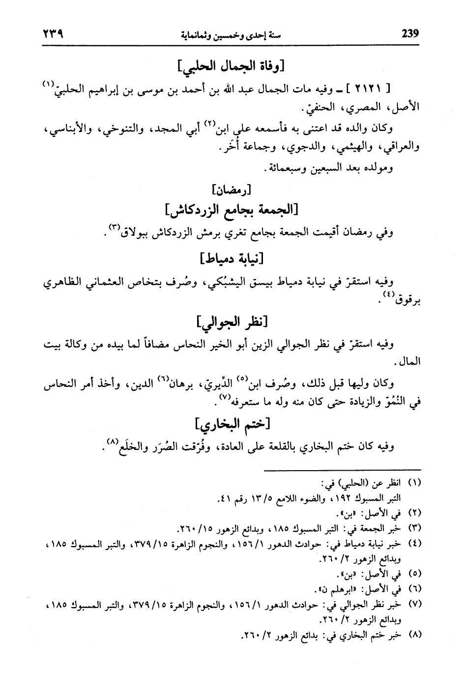 وفيه استقرّ في نظر الجوالي الزين أبو الخير النحاس مضافا لما بيده من وكالة بيت المال.