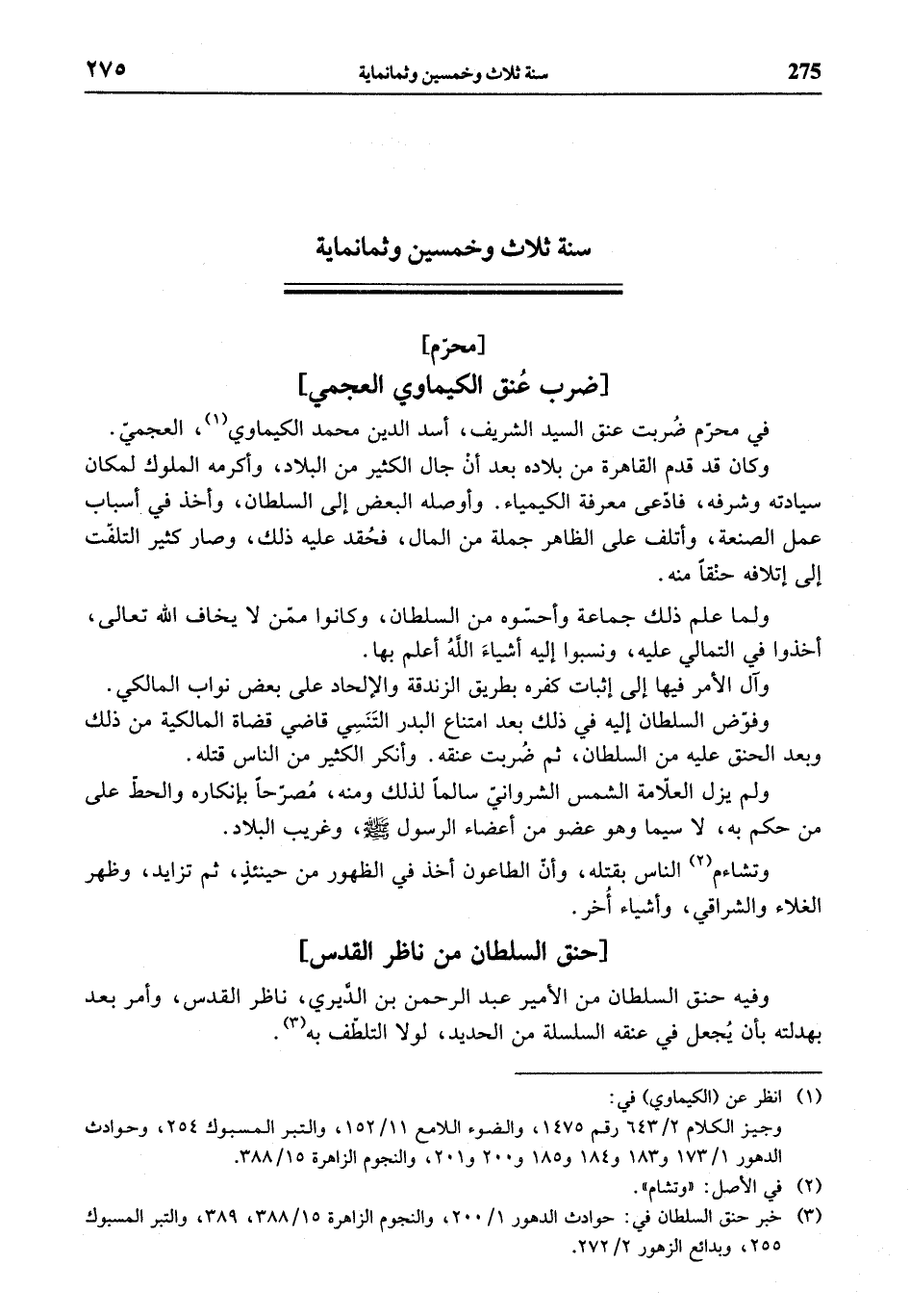 (¬3) خبر حنق السلطان في: حوادث الدهور 1/ 200، والنجوم الزاهرة 15/ 388، 389، والتبر المسبوك 255، وبدائع الزهور 2/ 272.
