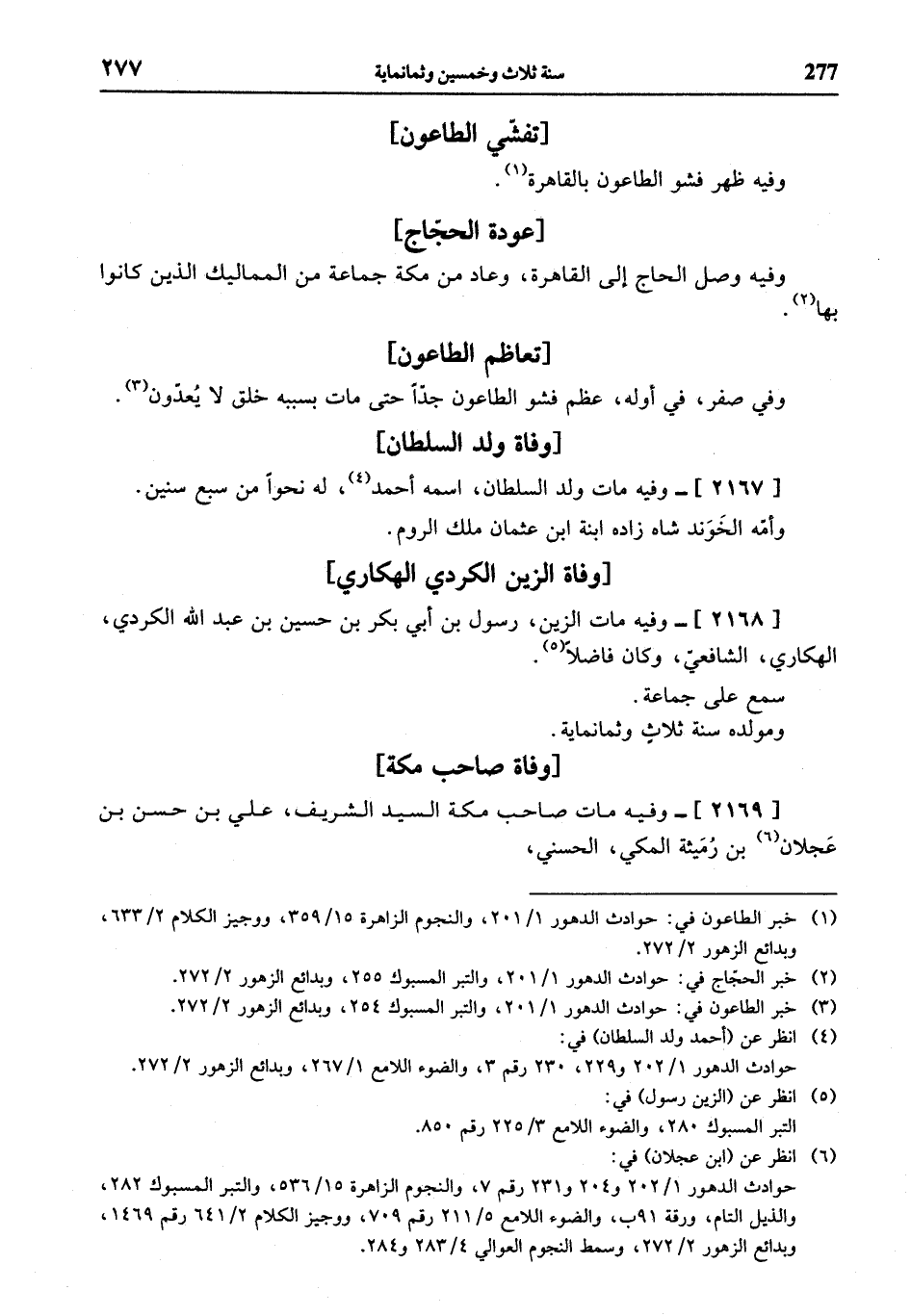 (¬3) خبر الطاعون في: حوادث الدهور 1/ 201، والتبر المسبوك 254، وبدائع الزهور 2/ 272.