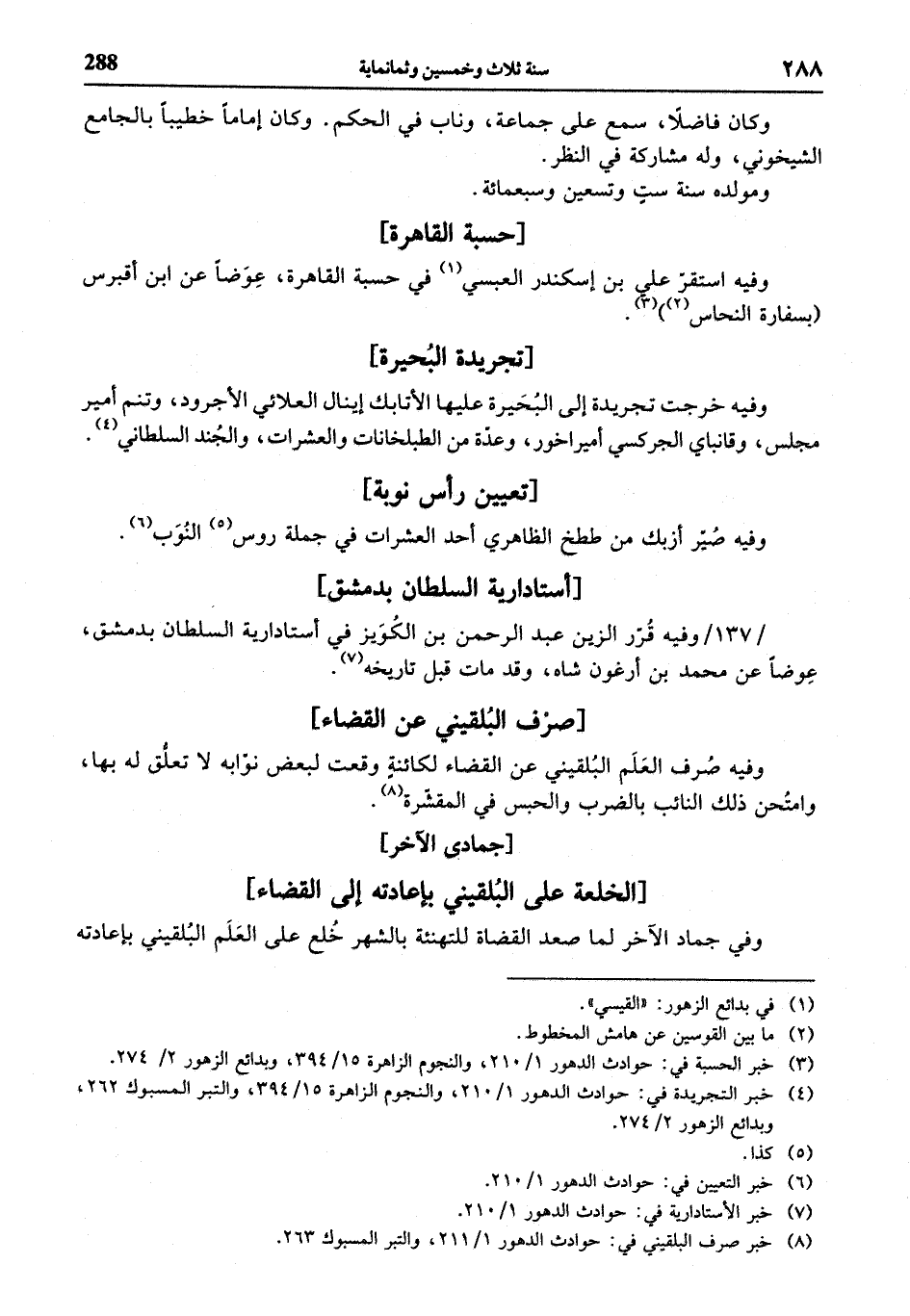(¬8) خبر صرف البلقيني في: حوادث الدهور 1/ 211، والتبر المسبوك 263.
