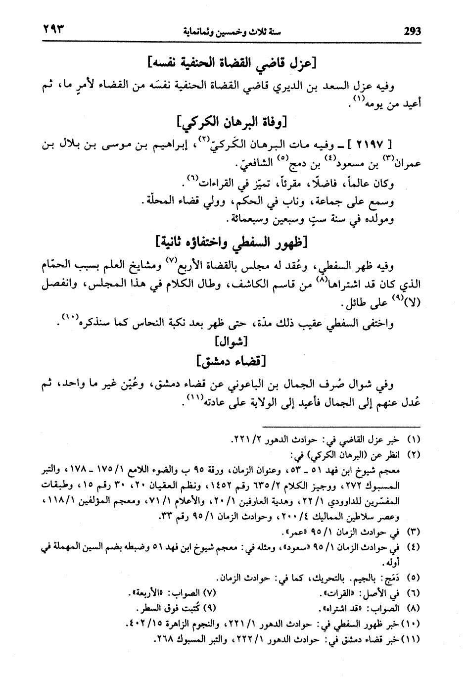 (¬11) خبر قضاء دمشق في: حوادث الدهور 1/ 222، والتبر المسبوك 268.