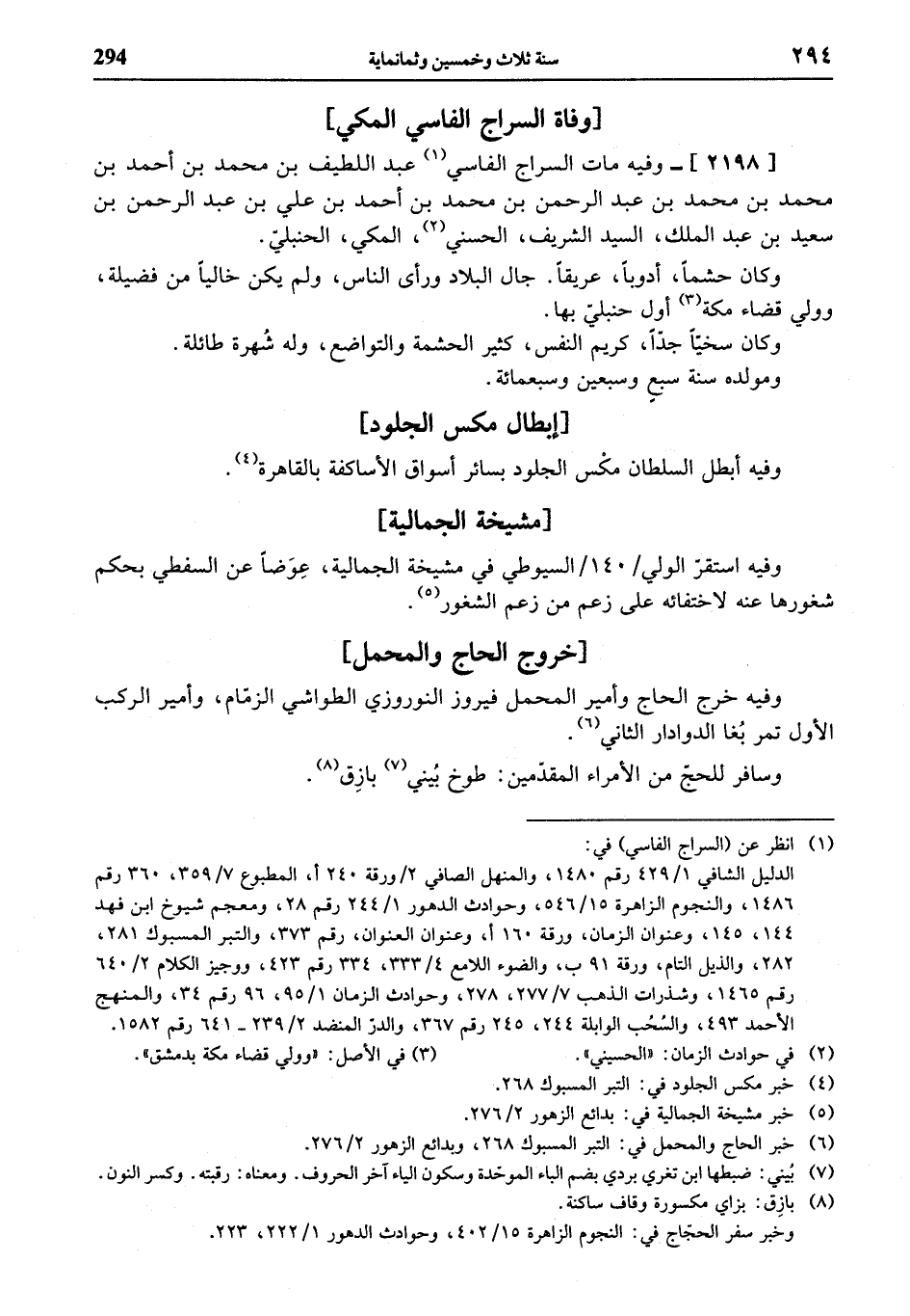 (¬6) خبر الحاج والمحمل في: التبر المسبوك 268، وبدائع الزهور 2/ 276.