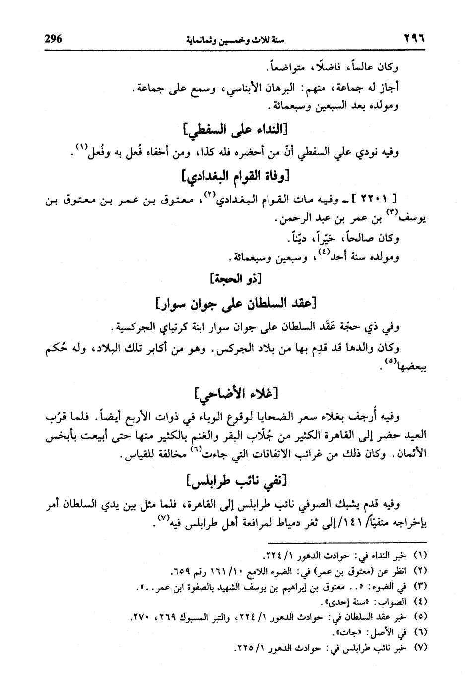 (¬5) خبر عقد السلطان في: حوادث الدهور 1/ 224، والتبر المسبوك 269، 270.