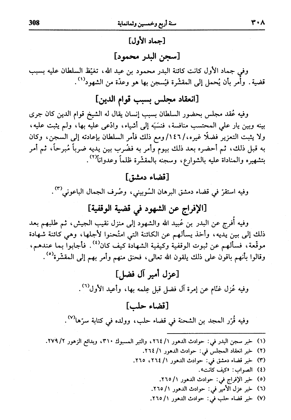 (¬3) خبر قضاء دمشق في: حوادث الدهور 1/ 264، 265.