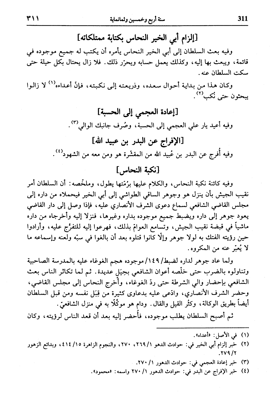 (¬4) خبر الإفراج عن البدر في: حوادث الدهور 1/ 270 واسمه: «محمود».
