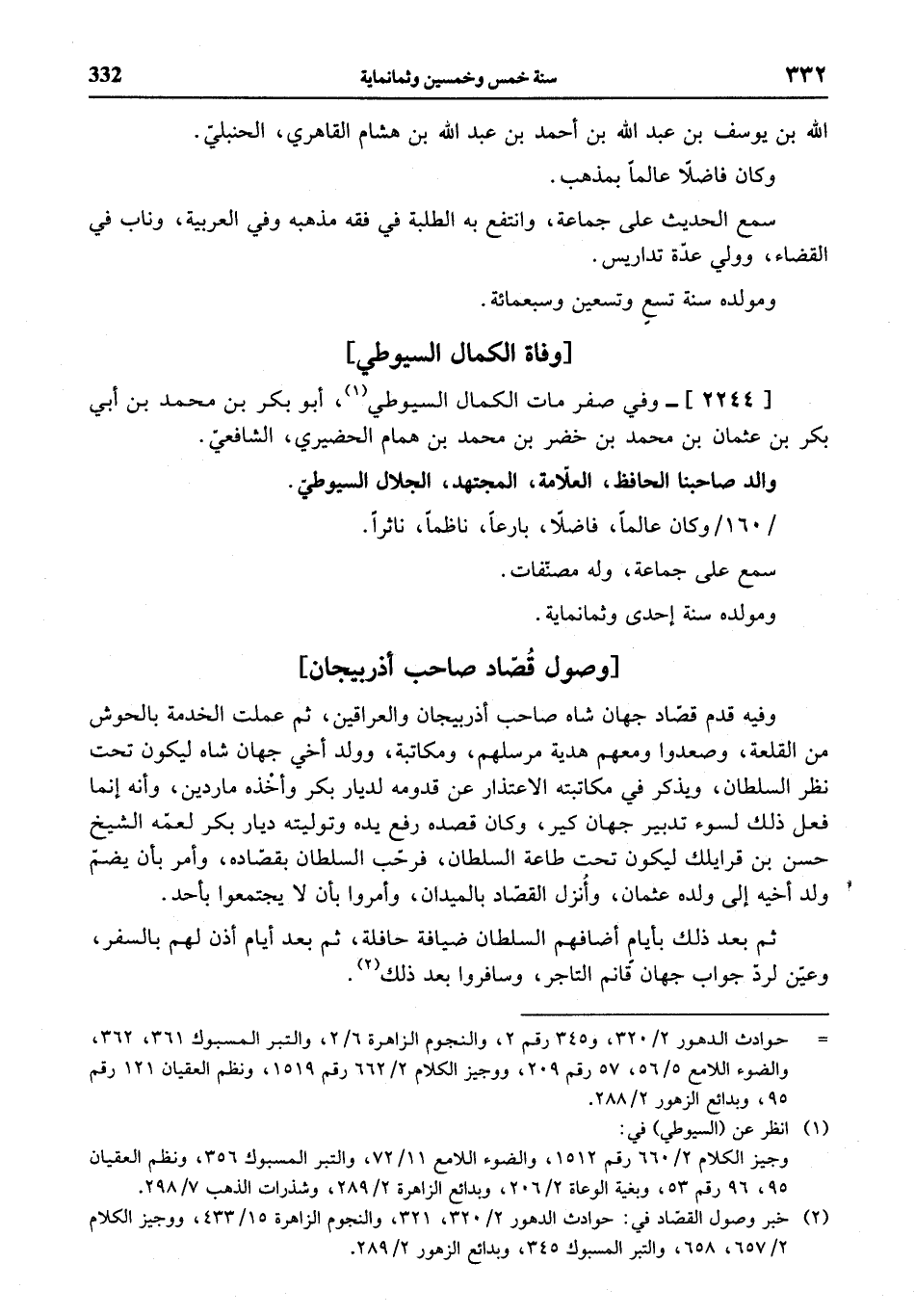 (¬1) انظر عن (السيوطي) في: وجيز الكلام 2/ 660 رقم 1512، والضوء اللامع 11/ 72، والتبر المسبوك 356، ونظم العقيان 95، 96 رقم 53، وبغية الوعاة 2/ 206، وبدائع الزهور 2/ 289، وشذرات الذهب 7/ 298.