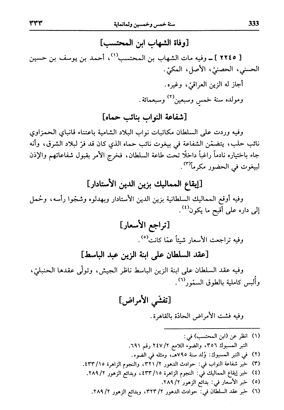 (¬1) انظر عن (ابن المحتسب) في: التبر المسبوك 356، والضوء اللامع 2/ 247 رقم 691.