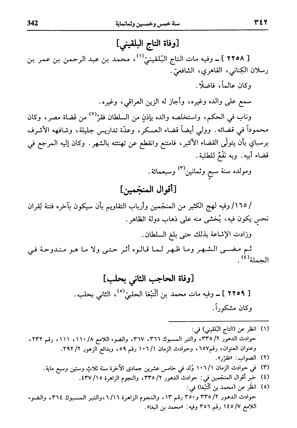 (¬4) خبر أقوال المنجّمين في: حوادث الدهور 2/ 335، والنجوم الزاهرة 15/ 437.