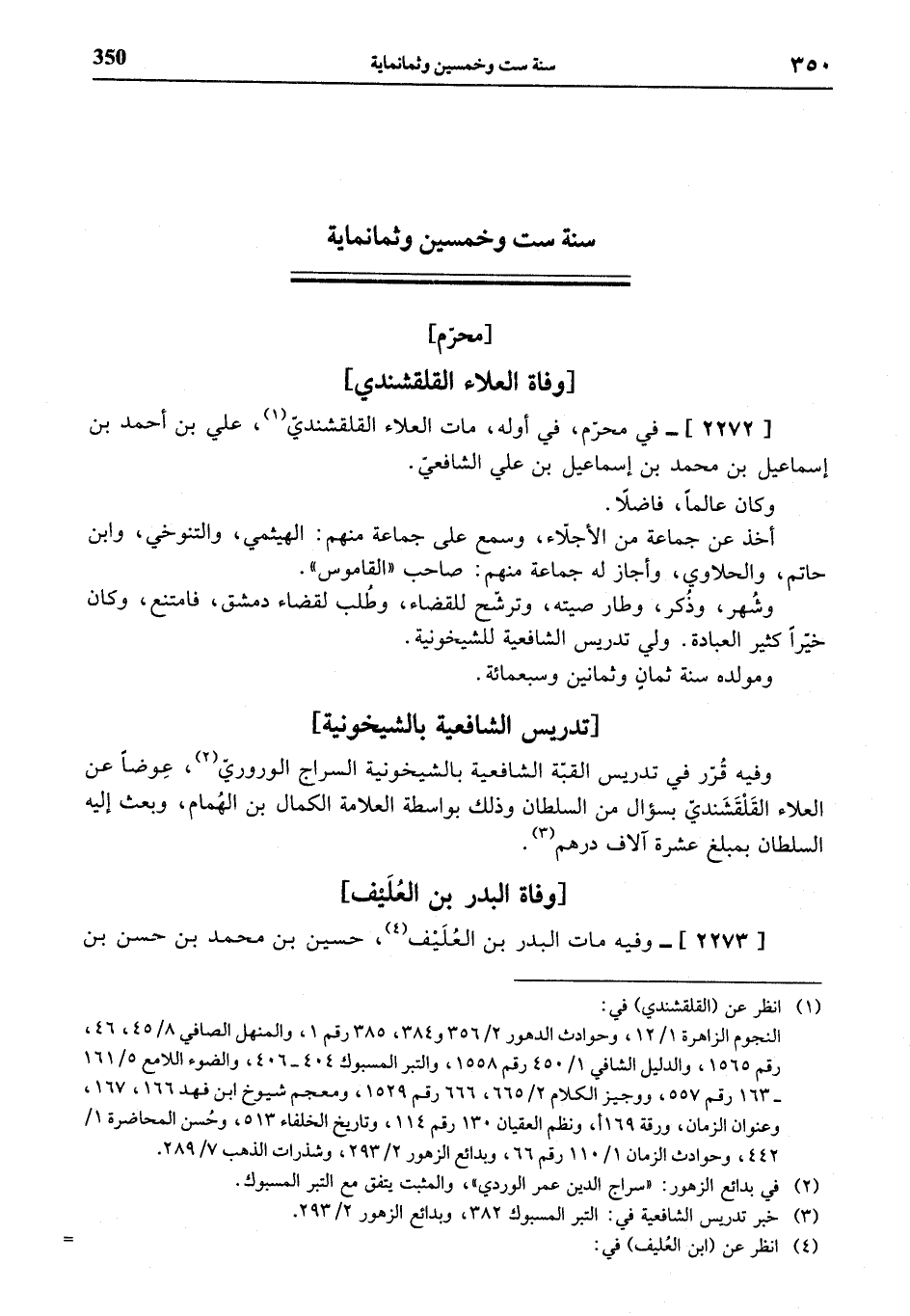 (¬3) خبر تدريس الشافعية في: التبر المسبوك 382، وبدائع الزهور 2/ 293.