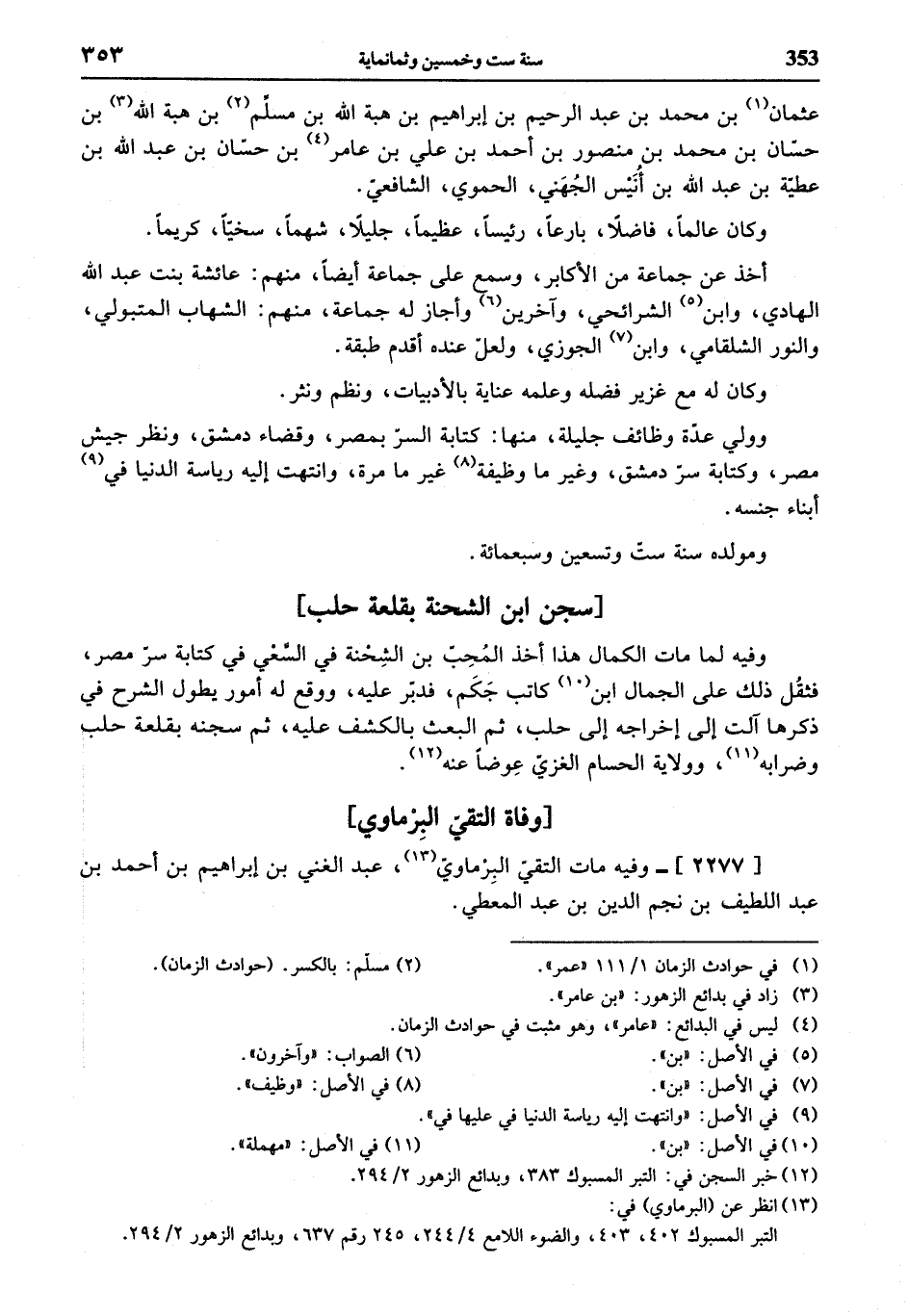 (¬13) انظر عن (البرماوي) في: التبر المسبوك 402، 403، والضوء اللامع 4/ 244، 245 رقم 637، وبدائع الزهور 2/ 294.