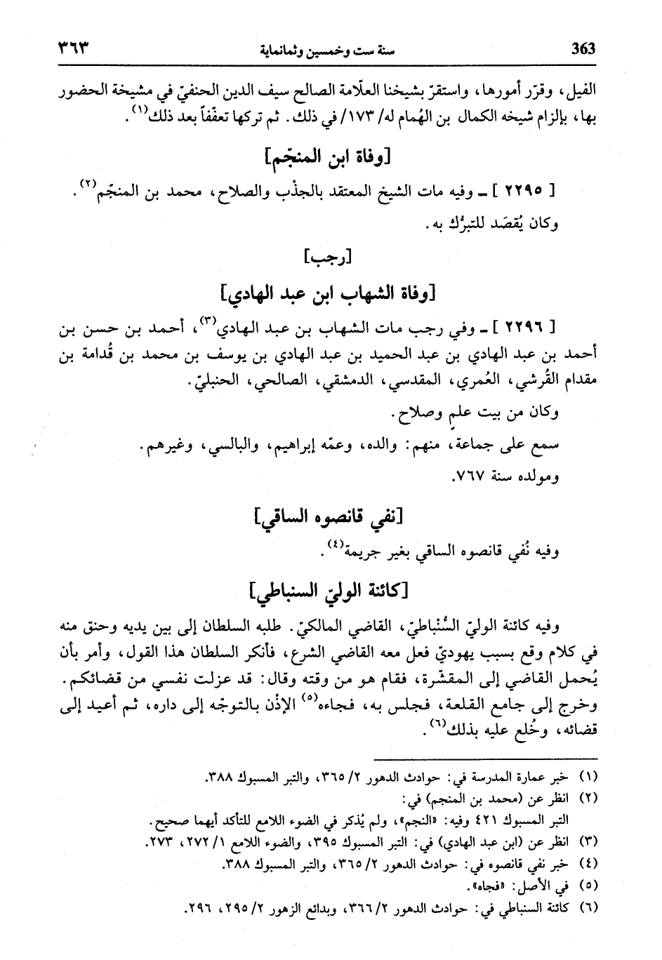 (¬3) انظر عن (ابن عبد الهادي) في: التبر المسبوك 395، والضوء اللامع 1/ 272، 273.