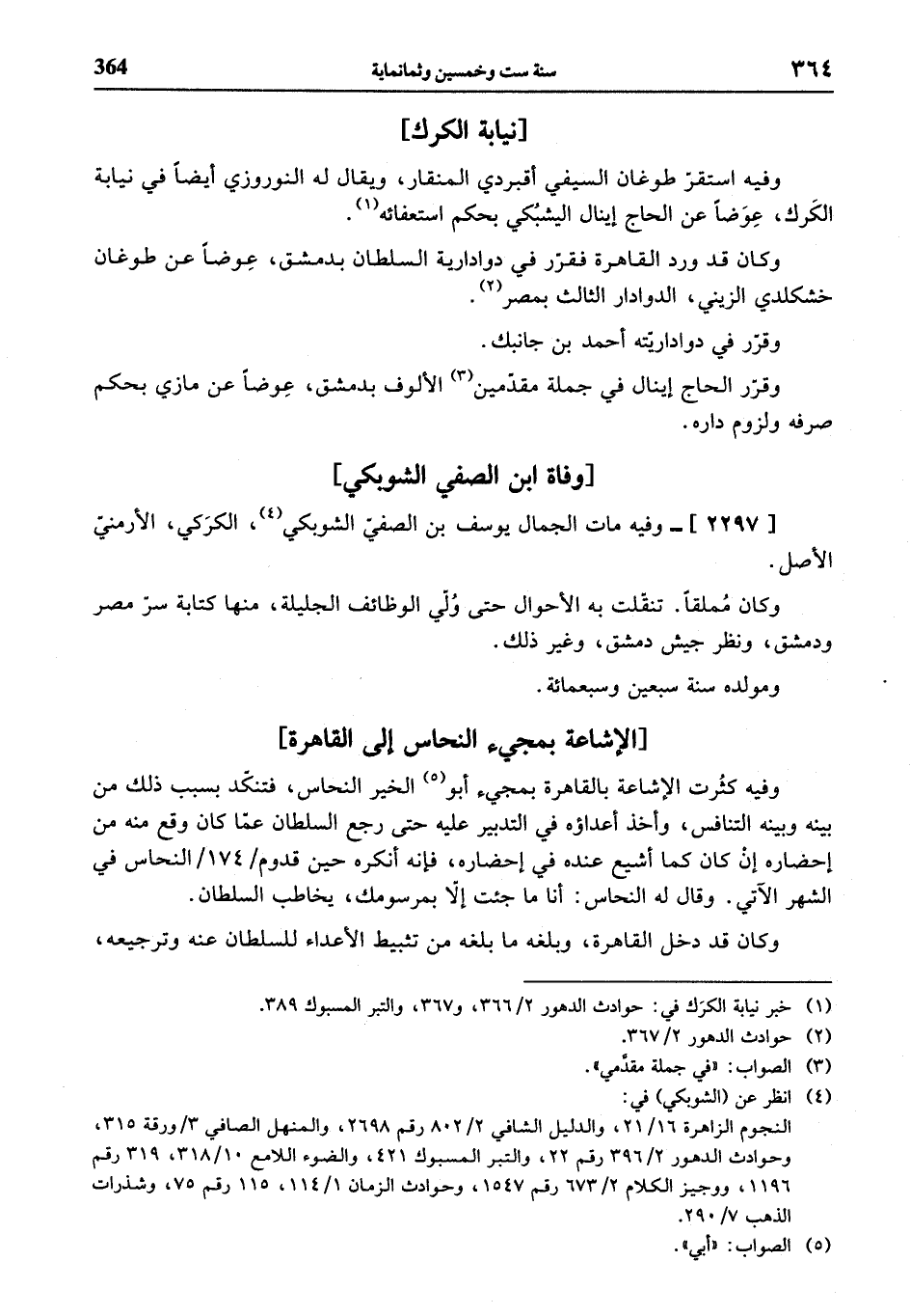 (¬1) خبر نيابة الكرك في: حوادث الدهور 2/ 366، و 367، والتبر المسبوك 389.