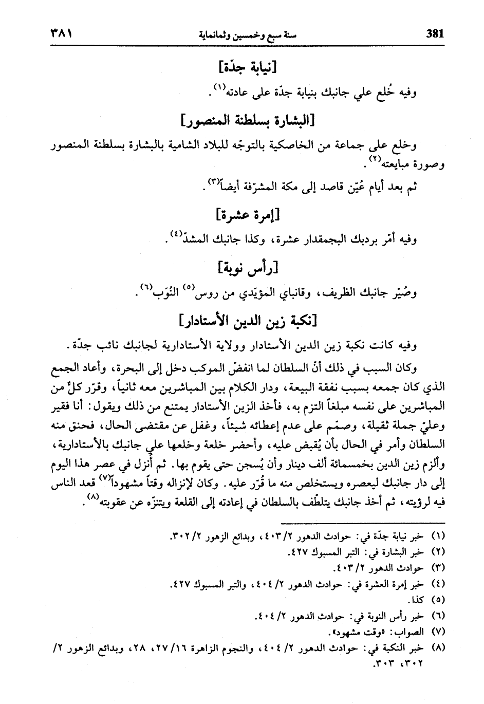 (¬8) خبر النكبة في: حوادث الدهور 2/ 404، والنجوم الزاهرة 16/ 27، 28، وبدائع الزهور 2/ 302، 303.