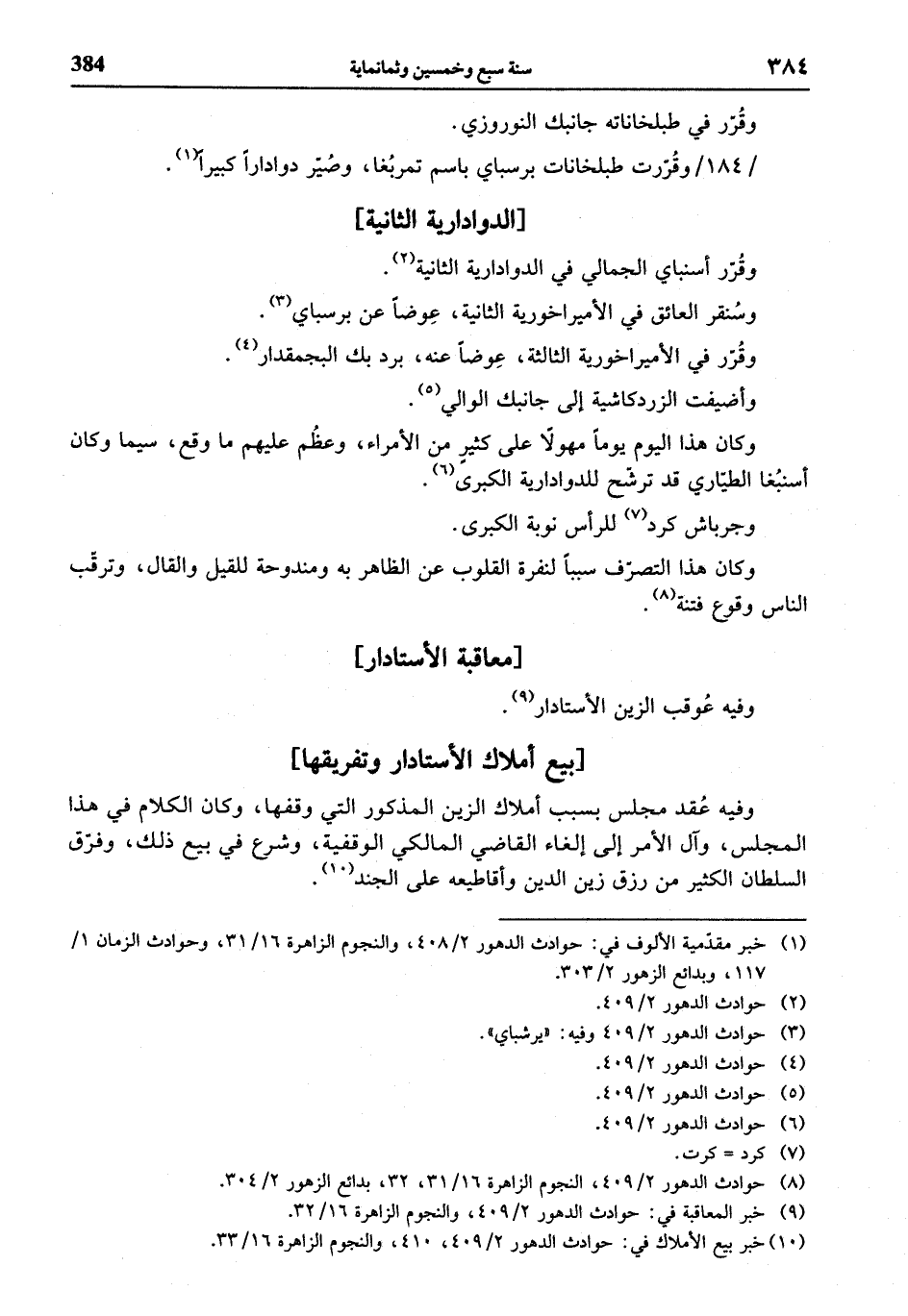 / 184 / وقرّرت طبلخانات برسباي باسم تمربغا، وصيّر دوادارا كبيرا (¬1).