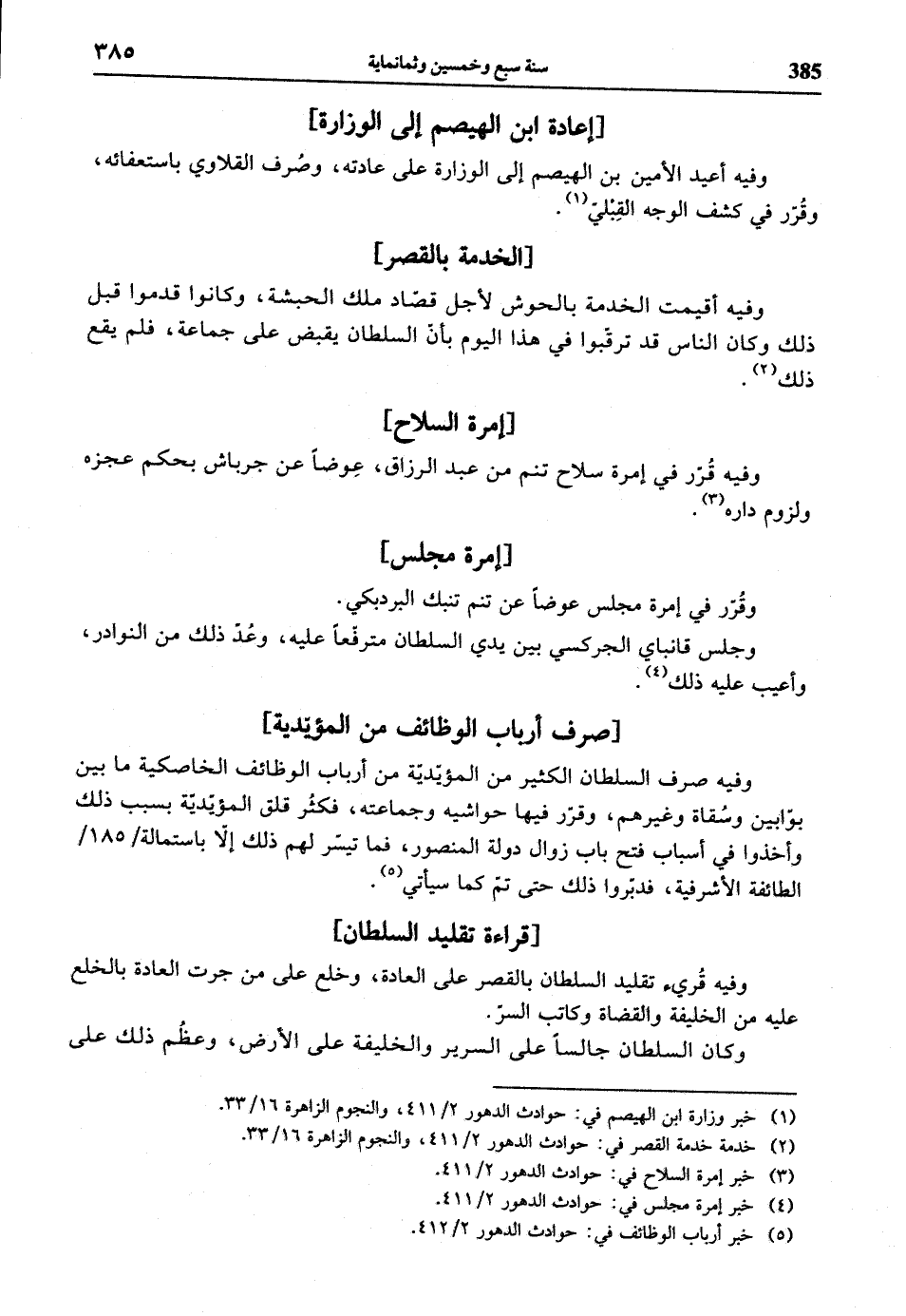 (¬5) خبر أرباب الوظائف في: حوادث الدهور 2/ 412.