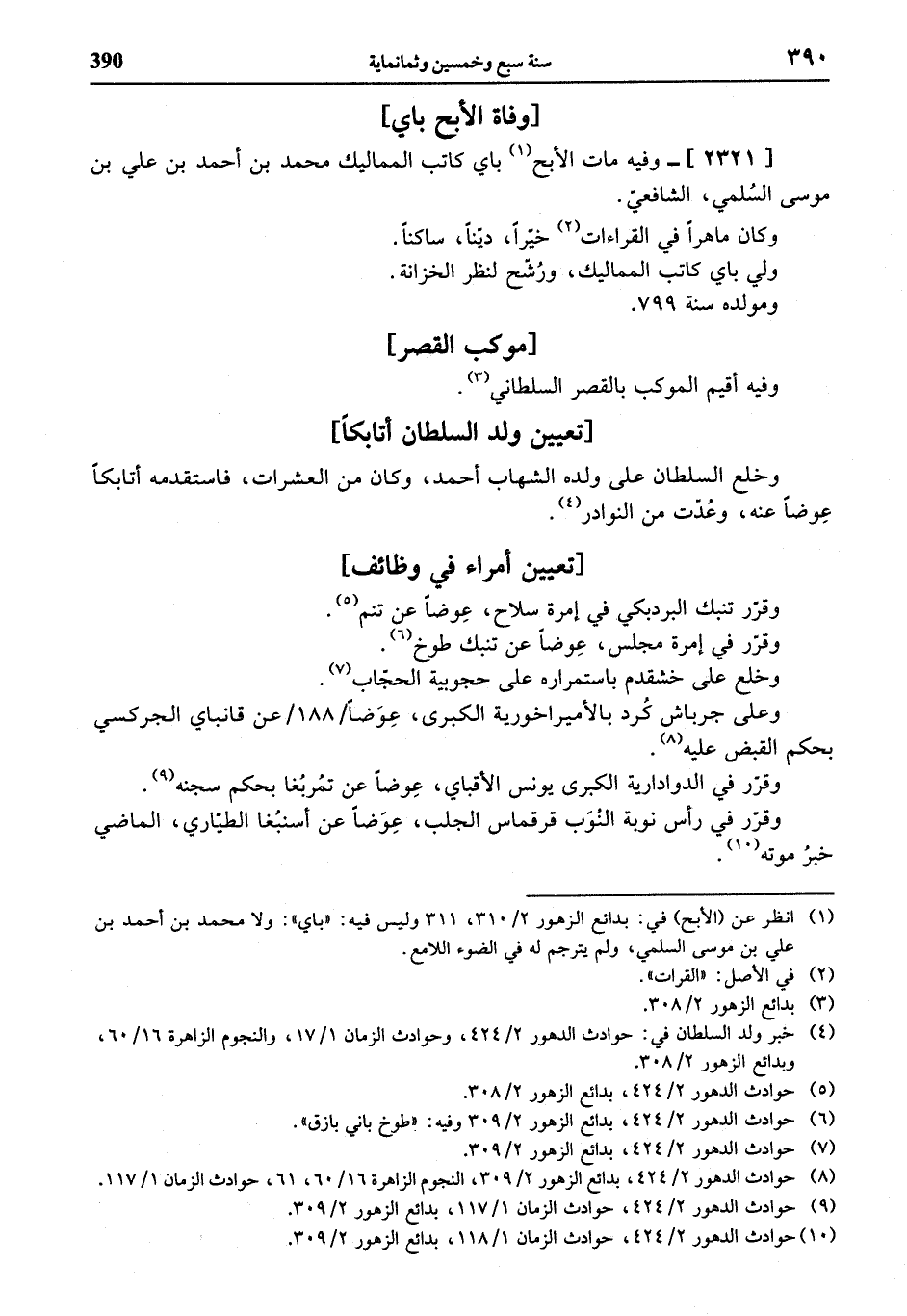 (¬1) انظر عن (الأبح) في: بدائع الزهور 2/ 310، 311 وليس فيه: «باي»: ولا محمد بن أحمد بن علي بن موسى السلمي، ولم يترجم له في الضوء اللامع.