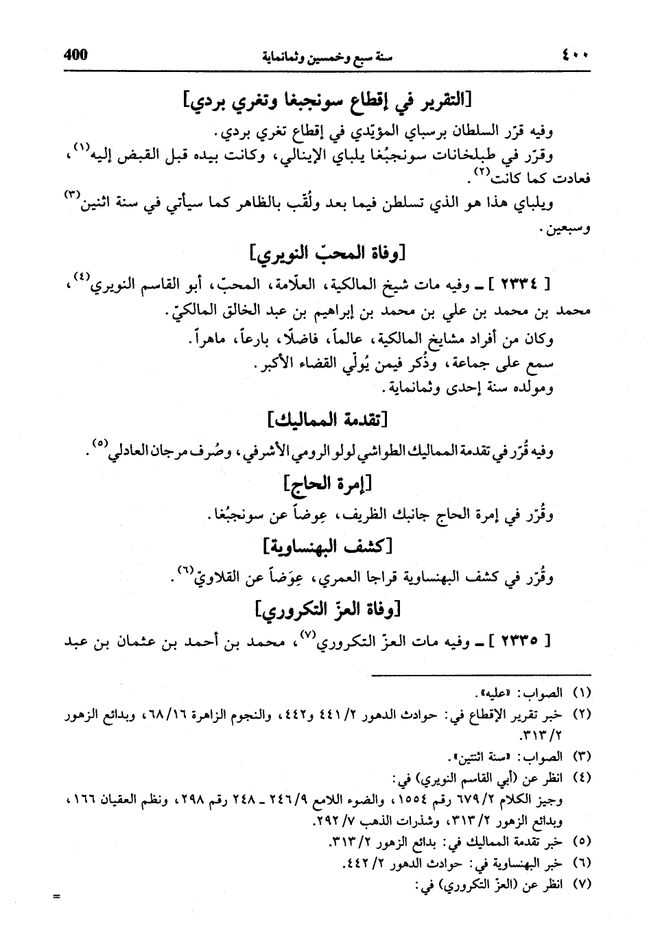 وفيه قرّر السلطان برسباي المؤيّدي في إقطاع تغري بردي.