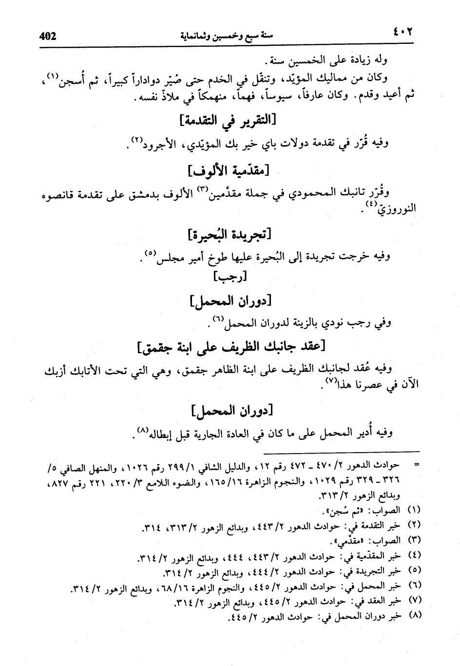 وقرّر تانبك المحمودي في جملة مقدّمين (¬3) الألوف بدمشق على تقدمة قانصوه النوروزيّ (¬4).