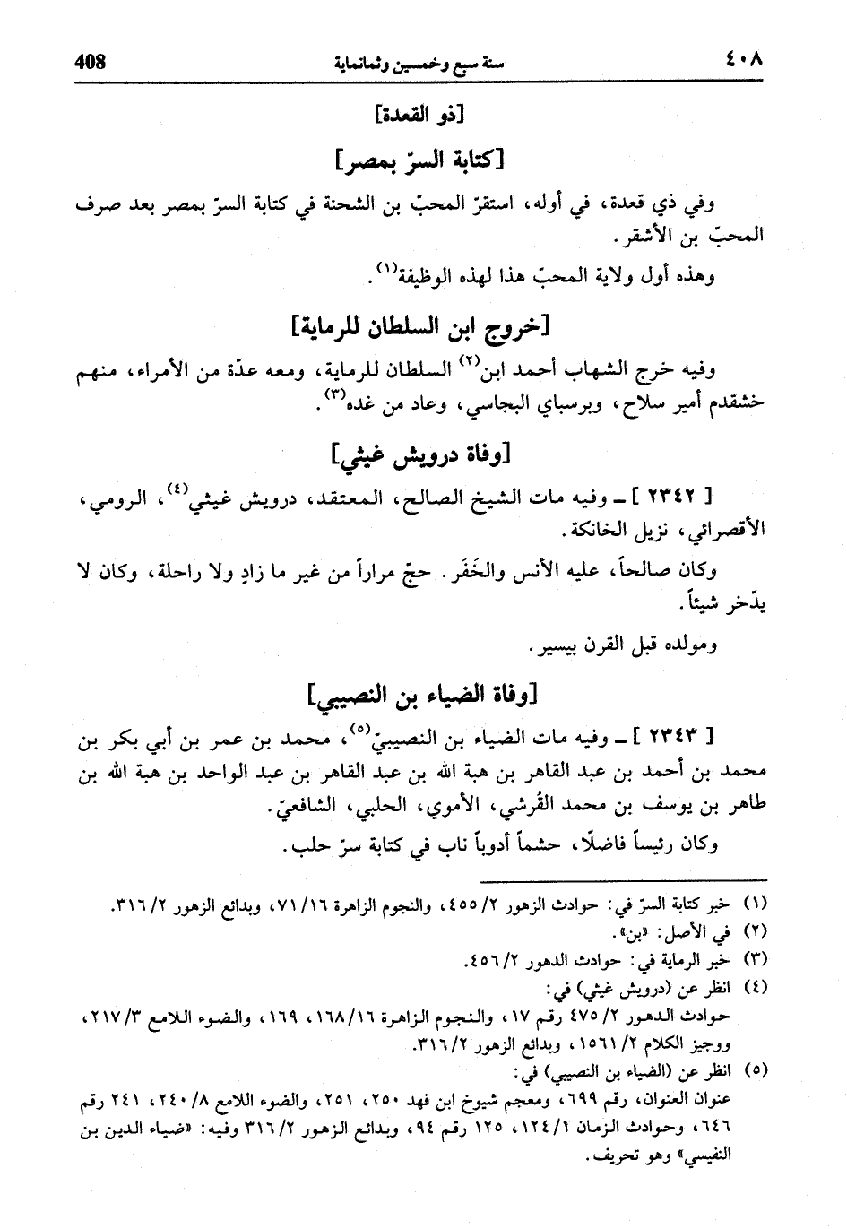(¬4) انظر عن (درويش غيثي) في: حوادث الدهور 2/ 475 رقم 17، والنجوم الزاهرة 16/ 168، 169، والضوء اللامع 3/ 217، ووجيز الكلام 2/ 1561، وبدائع الزهور 2/ 316.