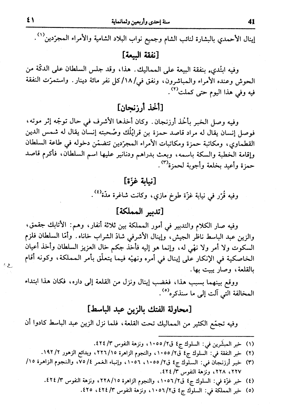 (¬3) خبر أرزنجان في: السلوك ج 4 ق 2/ 1055، 1056، وإنباء الغمر 4/ 75، والنجوم الزاهرة 15/ 227، 228، ونزهة النفوس 3/ 424.