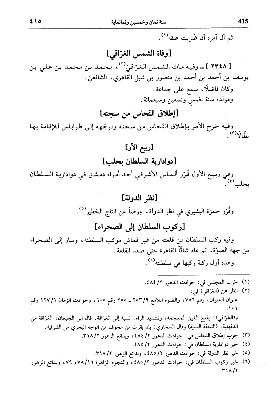 (¬3) خرب إطلاق النحاس في: حوادث الدهور 2/ 484، وبدائع الزهور 2/ 318.