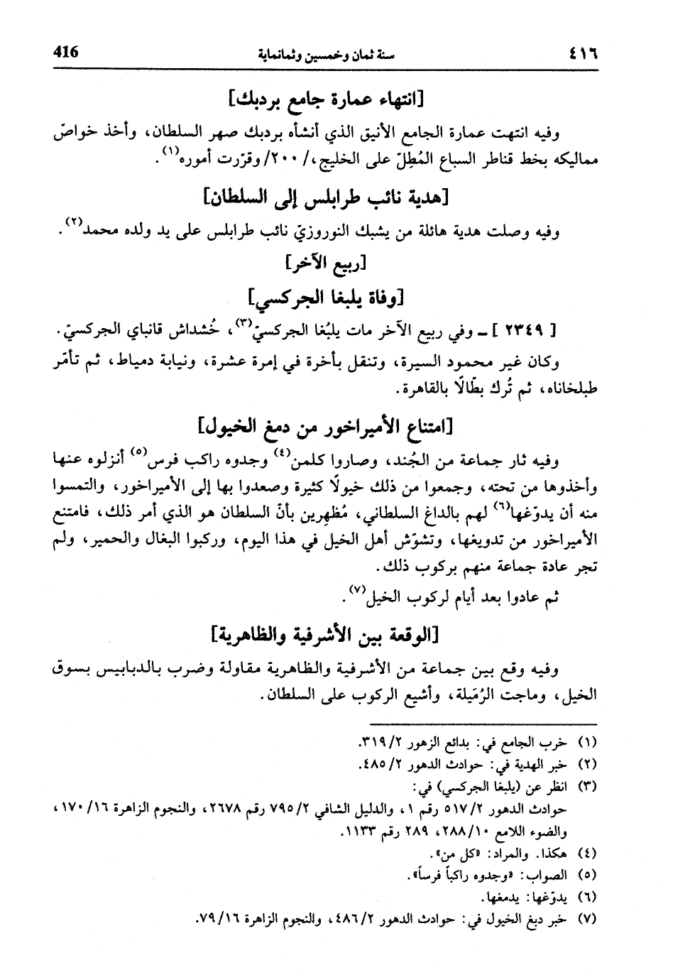 (¬3) انظر عن (يلبغا الجركسي) في: حوادث الدهور 2/ 517 رقم 1، والدليل الشافي 2/ 795 رقم 2678، والنجوم الزاهرة 16/ 170، والضوء اللامع 10/ 288، 289 رقم 1133.