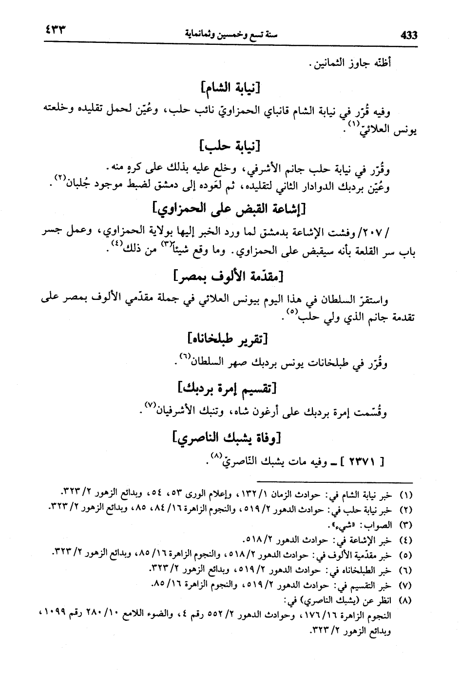 واستقرّ السلطان في هذا اليوم بيونس العلائي في جملة مقدّمي الألوف بمصر على تقدمة جانم الذي ولي حلب (¬5).