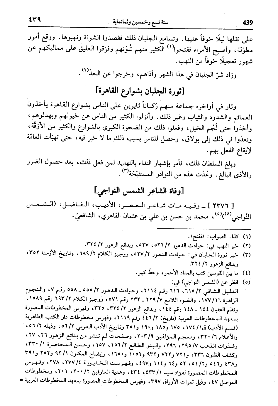 (¬3) خبر ثورة الجلبان في: حوادث الدهور 2/ 527، ووجيز الكلام 2/ 689، وتاريخ الأزمنة 352، وبدائع الزهور 2/ 324.