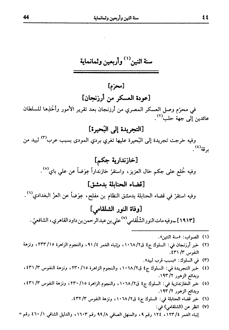 (¬4) خبر التجريدة في: السلوك ج 4 ق 2/ 1068، والنجوم الزاهرة 15/ 230، ونزهة النفوس 3/ 431، وبدائع الزهور 2/ 193.
