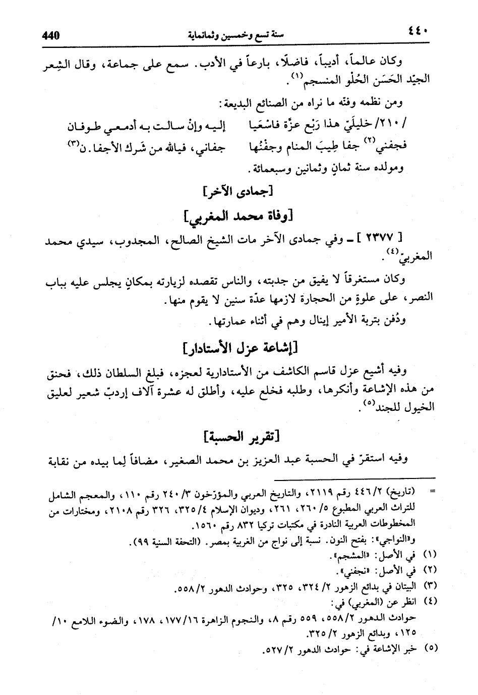 (¬5) خبر الإشاعة في: حوادث الدهور 2/ 527.