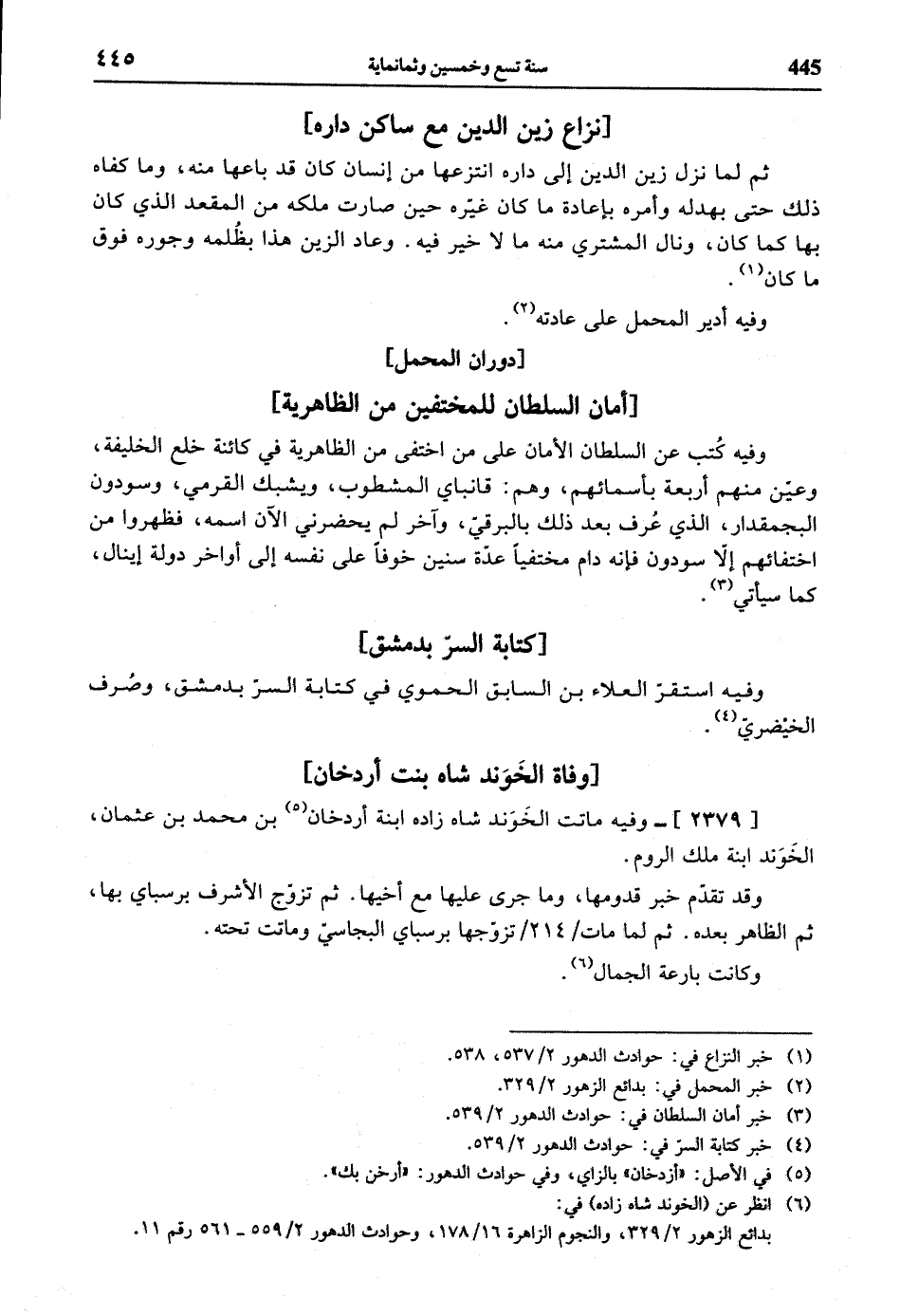 (¬6) انظر عن (الخوند شاه زاده) في: بدائع الزهور 2/ 329، والنجوم الزاهرة 16/ 178، وحوادث الدهور 2/ 559 - 561 رقم 11.